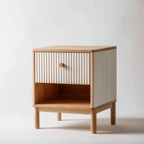 Matériaux : Structure et tiroir en bois massif, panneaux latéraux rainurés en bois massif