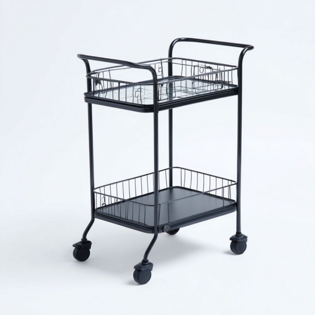 Chariot de rangement à deux niveaux en acier avec roulettes