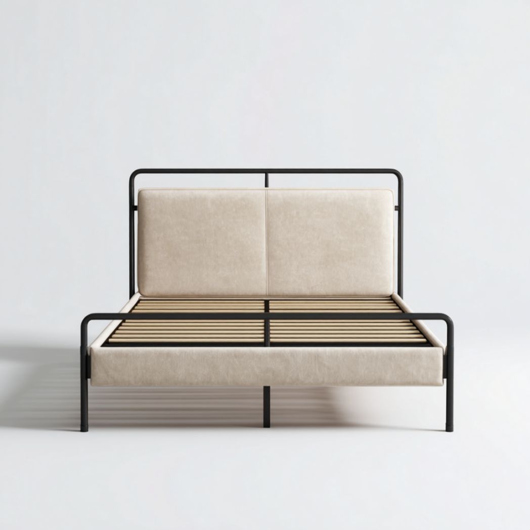 Lit double beige cadre métal noir