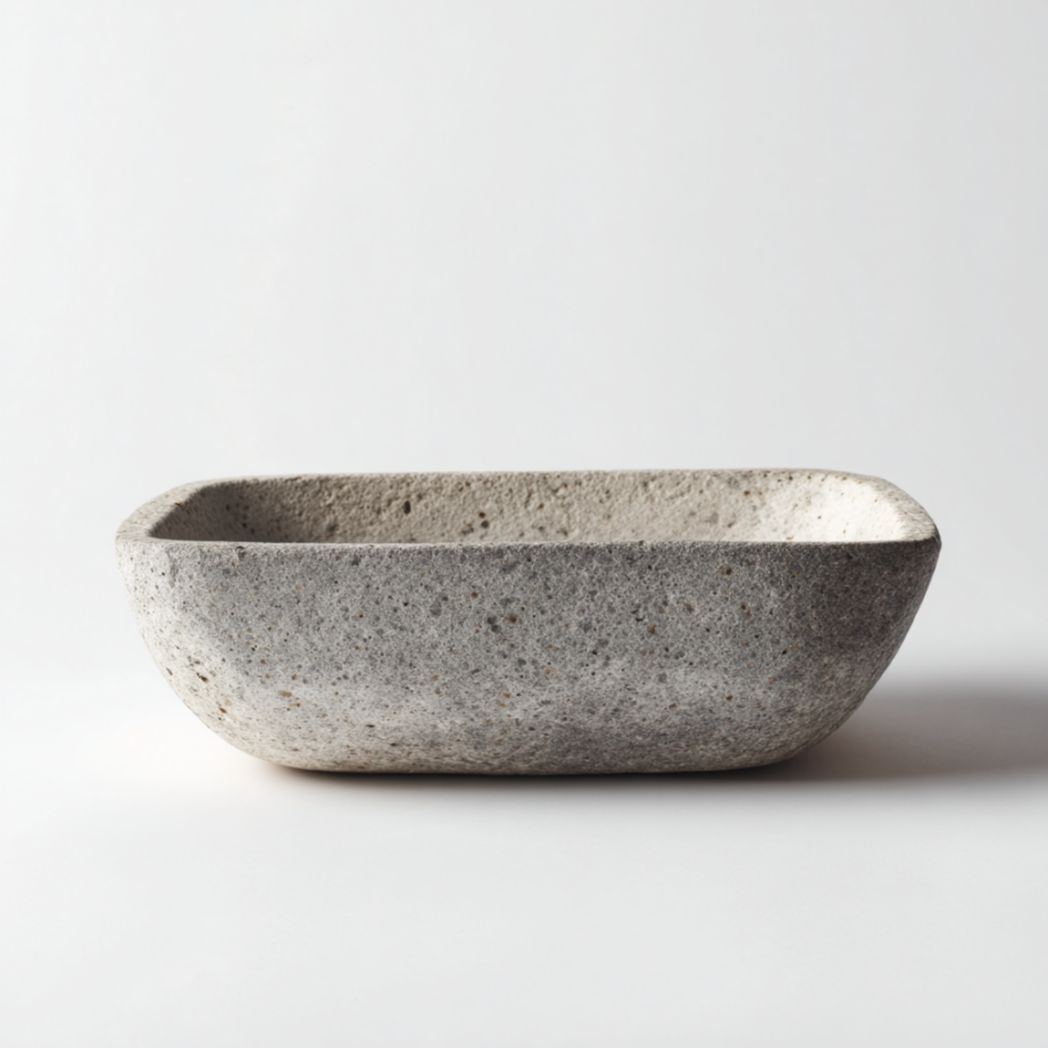 Vasque à poser ovale allongée en pierre naturelle grise
